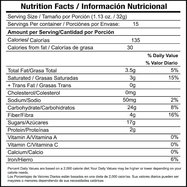 Fibra – Cada sobre tiene 4 gramos de fibra.
