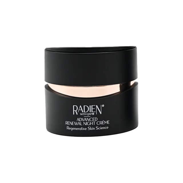 Radien con QXP, Crema de Noche Renovadora Avanzada, contiene péptidos QXP y agentes proteicos que ayudan al cuerpo a restaurar el colágeno y la elastina. Sus fitocompuestos vegetales, como los aceites de semillas proteicas, aportan compuestos naturales y ricos que penetran profundamente en la dermis para favorecer la producción de colágeno. El extracto de nuez ayuda a reducir la hinchazón, calma la piel e hidrata.