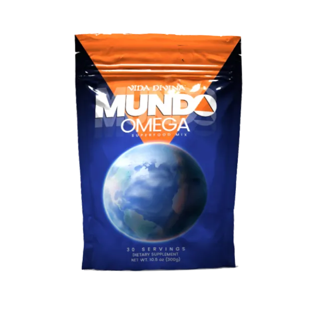 Mezcle 1 cucharada de Mundo Omega con 6-8 oz. de agua fría para obtener una bebida refrescante y vigorizante.
